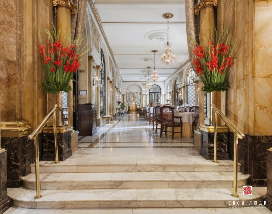 Отель имеет классическую архитектуру. Лобби и холлы украшены огромными зеркалами, мраморными колоннами и дорогими коврами.