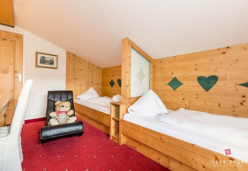 Досуг здесь ориентирован и на взрослых, и на самых маленьких членов семьи – детей. Для малышей отель приготовил огромное количество сюрпризов спортивного и развлекательного характера. Поэтому семейный отпуск в Aktivhotel Veronika 4* получится насыщенным радостными впечатлениями. Примечательно, что предоставляется возможность посещения отеля с четвероногими питомцами, о которых позаботится непосредственно персонал заведения.