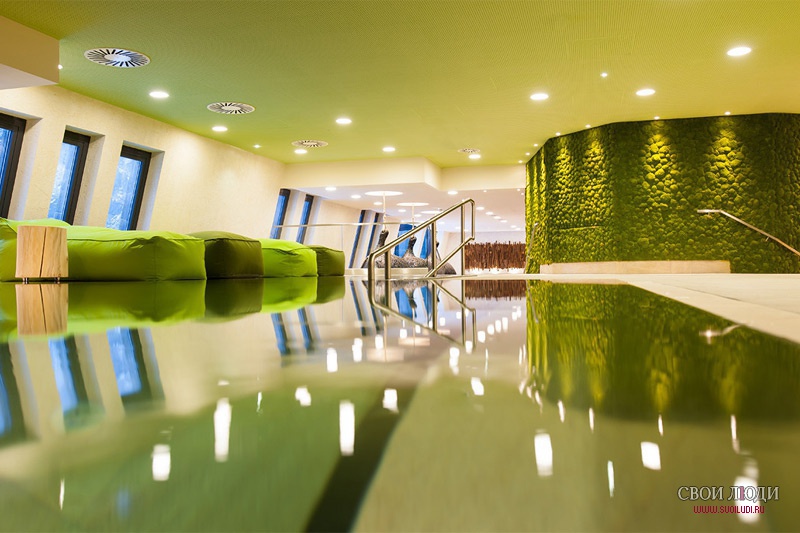 Превосходный спа-центр отеля включает два крытых и два открытых бассейна с термальной водой, которая поступает с глубины 1865 метров, три бассейна в форме чаши со звуковыми и световыми эффектами, расположенных на открытом воздухе, спортивный бассейн (25 метров в длину). Помимо этого в спа-центре расположен целый комплекс саун, «Gletschergluehen», с температурой от 45 до 105 °С (включая традиционную земляную сауну). Паровые бани, травяные, грязевые и медовые ванны, соляной и ледяной гроты, ванны Кнейпа, разнообразные зоны отдыха – все возможности спа-центра площадью 2200 кв.м перечислить непросто. Наслаждайтесь водными и косметическими процедурами, массажем и забудьте о повседневной суете.