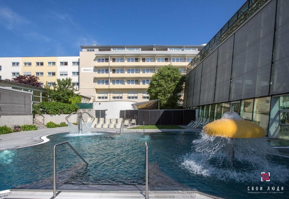 В отеле работает спа-центр «Badener Hof». Здесь, на территории в 3500 кв. м гостям доступны открытый и крытый бассейны, сауна и баня. Комплекс имеет прямой доступ в лечебный центр Badener, где принимают врачи высокой квалификации. Его медицинские программы основаны на целебных свойствах серной воды Бадена, обладающей уникальными регенерирующими свойствами, а также самых современных терапевтических методиках и достижениях европейской медицины.
