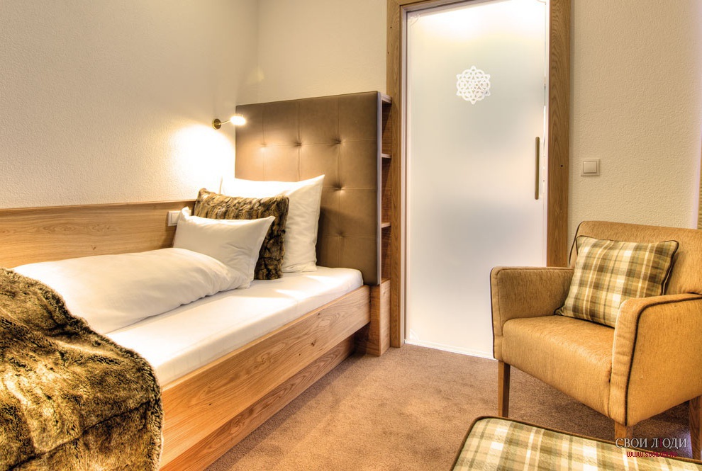 Junior Suite: элегантный номер площадью 25-30 кв. м. оснащен, помимо спальни, зоной отдыха. В некоторых полулюксах есть балконы с прекрасными видами на Альпы.