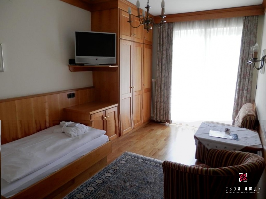 Кроме того, раз в неделю в ресторане отеля устраивается ужин под музыкальное сопровождение и «тематический» буфет. При необходимости на стол подают диетическое, вегетарианское и детское меню. Кстати, если приехать в эту гостиницу с малышами до 6 лет доплачивать за них не придется. Все указанные услуги питания являются платными. К числу бесплатных сервисов, которые может предложить отель Kur und Sporthotel Alpina 4*, относятся: постельное белье, полотенца, а также отопление, электричество и вода. А вот за такие дополнительные принадлежности, как купальные халаты, услуги уборки в комнате и место в гараже, придется доплатить.