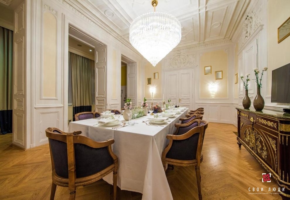 В отеле работает знаменитый венский ресторан At Eight, расположенный на первом этаже, в котором можно не только насладиться потрясающей едой по рецептам разных стран (т.наз. «ароматической кухни»), но и безупречным сервисом. Ресторан имеет приятный дизайн в свежих зеленых тонах и обставлен мебелью из дерева цепрано, а дополняют картину интересное освещение и красивые коллажи на стенах. Винная карта более чем внушительна: 770 сортов вина и шампанского из собственного подвала.