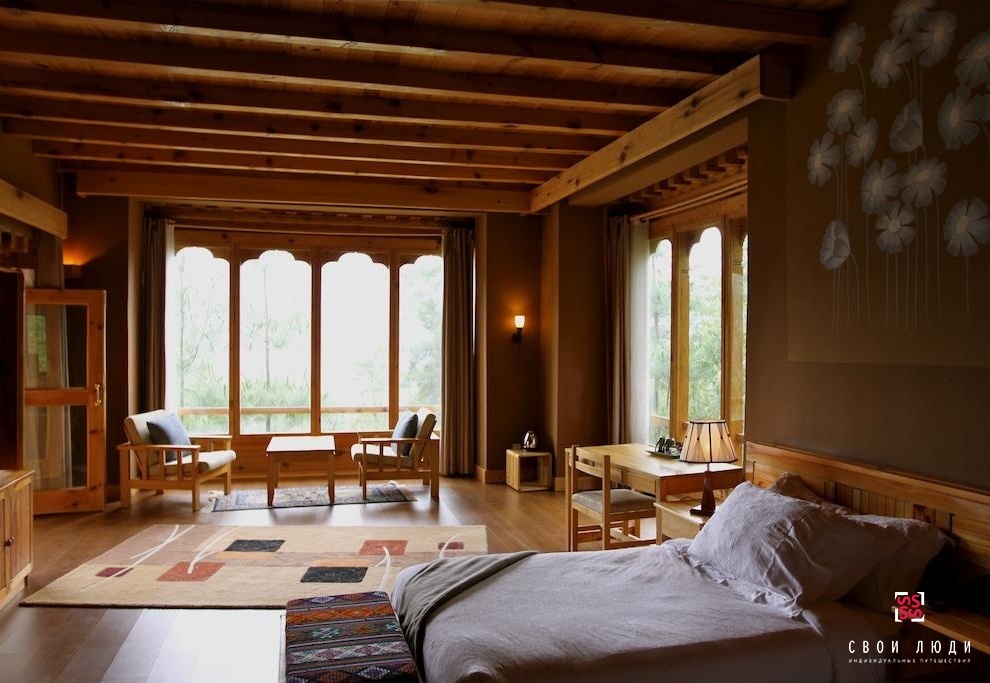 В отеле 38 номеров различных категорий не ниже «супериор». Из всех открываются роскошные виды на долину, гору Джомолхари и монастырь Тактсанг,