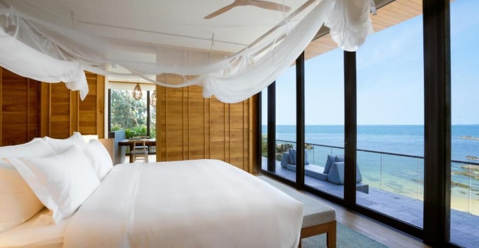 Панорамные окна до пола и расположение вилл на некотором удалении друг от друга позволяют почувствовать максимальную уединенность и погружение в тропическую природу. Воздух наполнен звуками джунглей и шумом океана. Здесь легко и приятно просыпаться на рассвете от пения птиц и начинать свое утро с flying-йоги или с прогулки по деревянной дорожке, проложенной у самой воды вокруг острова, наблюдая за утренней охотой крабов.