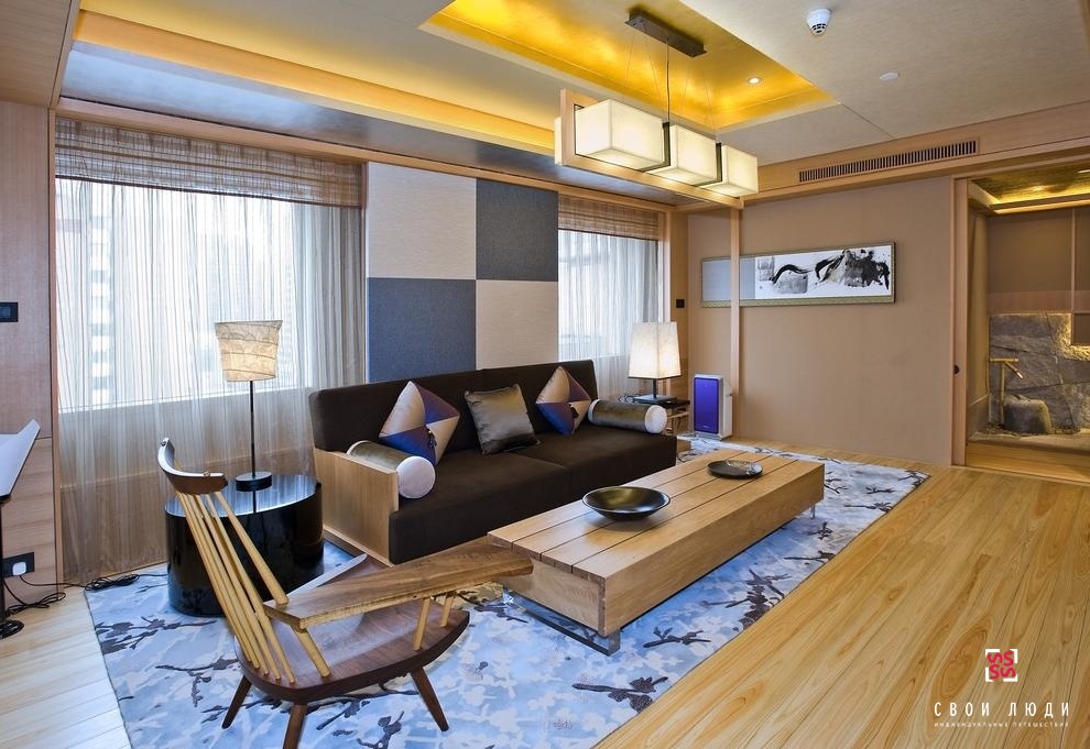 500 номеров категории: 312 Standard (32 кв.м.); 118 Business floor (32 кв.м.); 52 Deluxe (36 кв.м.); 8 Junior Suite (64 кв.м.); 4 Panoramic Suite (68 кв.м.); 4 Executive Suite (96 кв.м.); 1 Great Wall Suite (128 кв.м.); 1 Fujil Suite (128 кв.м.).