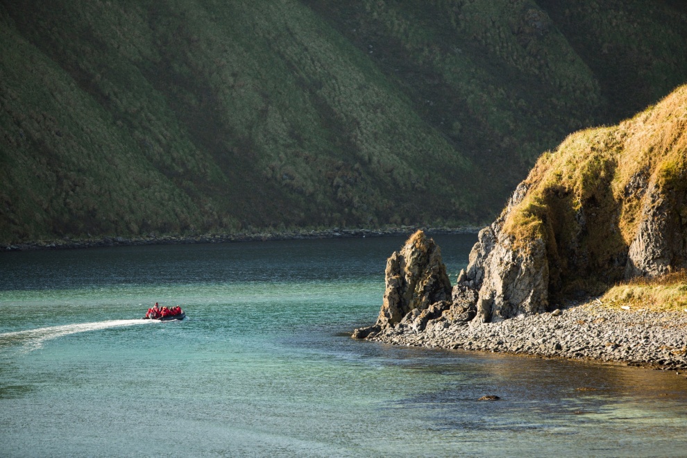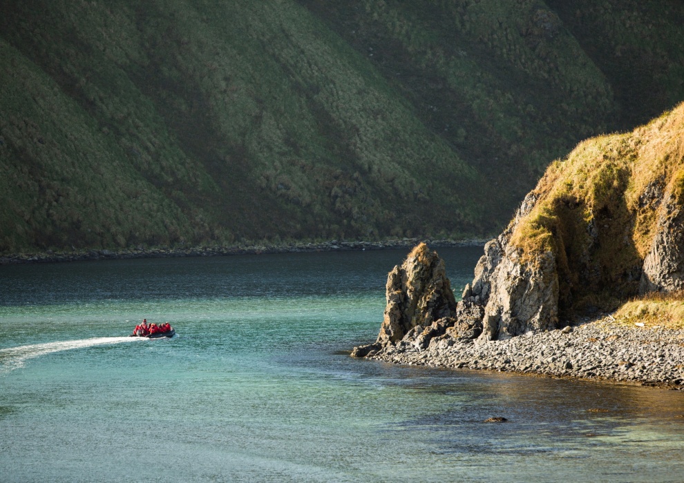 Сегодня на лодках Зодиаках вы максимально приблизитесь к скалам, увидите грандиозные колонии сивучей, шумные птичьи базары и фантастические формы подводного кратера. Высадки здесь не проводятся — вся магия Ловушек раскрывается именно с воды.