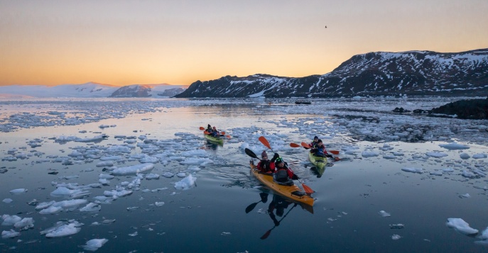 А для более полного погружения вы сможете попробовать полярный каякинг — пройти лабиринтами айсбергов и, если повезет, увидеть китов совсем рядом с вашим каяком.