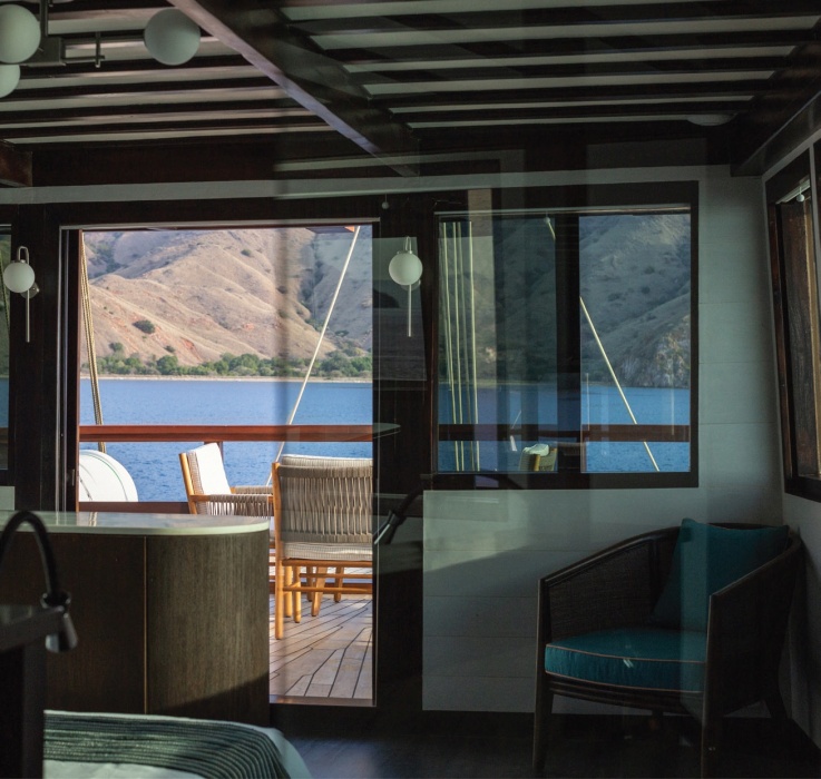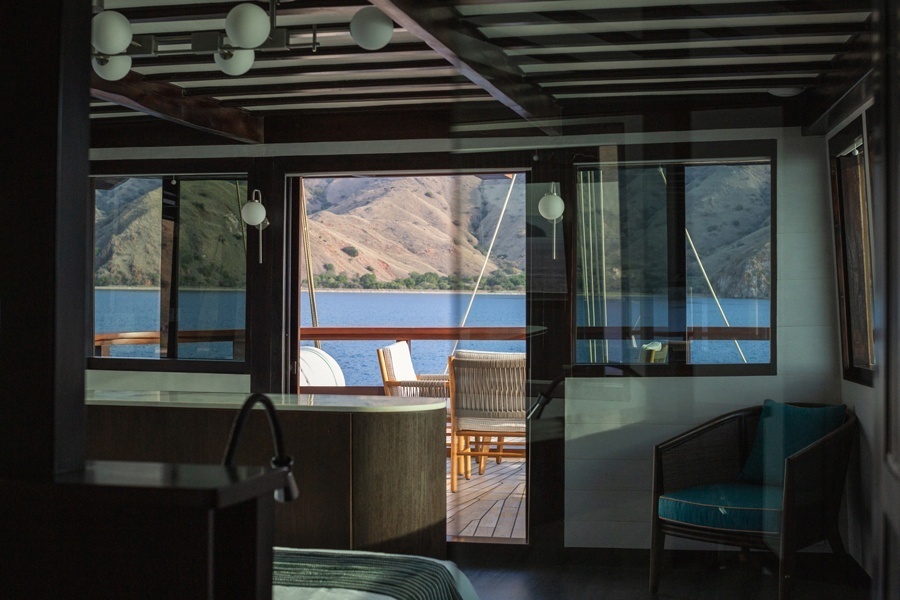Владельцы Vela также являются творческой силой Nirjhara, роскошного курорта в Танах-Лоте, Бали. На борту яхты вы можете ожидать того же эко-шика в дизайне. Богатое тиковое дерево прекрасно контрастирует с белой и кремовой обивкой и подушками. Огромные окна пропускают естественный свет в элегантную столовую и лаундж, где есть бар и винный погреб. На обширных деревянных палубах есть места для обедов на свежем воздухе, а также большие диваны и шезлонги для принятия солнечных ванн и наблюдения за горизонтом. Есть также палуба для йоги, где вы можете выполнять солнечные приветствия или медитировать под дуновением морского бриза.