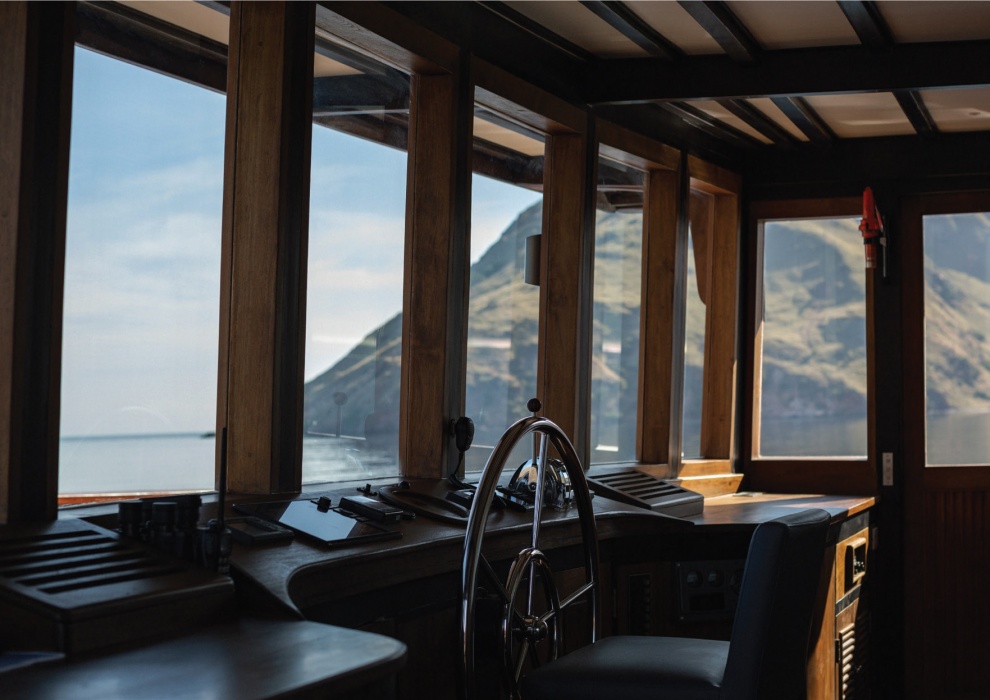 - 18 членов экипажа, включая директора круиза, частного шеф-повара, гида по дайвингу, массажиста, стюардов и инженера;