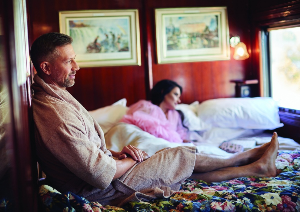 Вы можете освежиться в своих люксах, прежде чем познакомиться с попутчиками в вагоне-салоне или панорамном вагоне.