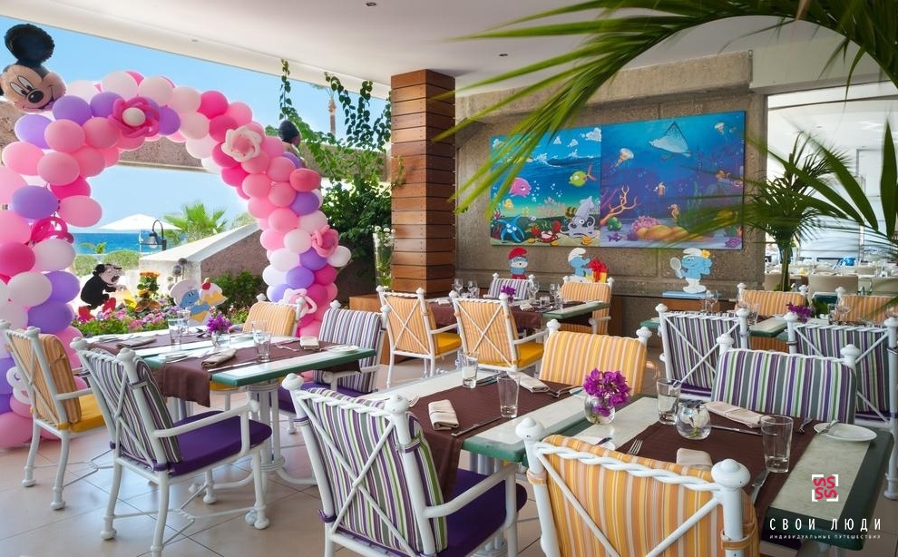 Kalypso Garden - ресторан, расположенный на панорамной террасе, с видом на сады и бассейны, приглашает на роскошный завтрак и обед, меню - буфет, а также здесь можно перекусить в течение дня. Это идеальное место для того, чтобы уловить прелесть каждого дня. Шеф-повар и его команда готовят только самые лучшие гастрономические шедевры на тематические вечера. Также в наличие меню a la carte. Детское меню для детей до 4-х лет.