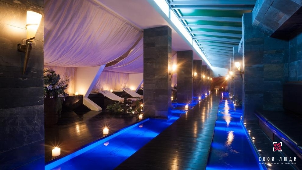Бар Nu Bar - большие черные шелковые подвески и элементы из хрусталя будут красиво сочетаться со стенами, покрытыми кожей – все для того, чтобы предложить гостям стильную атмосферу, где можно полностью расслабиться. Шикарная барная стойка из оникса, подсвеченная мягким желто-оранжевым светом, предложит большой выбор алкогольных и неалкогольных напитков, таких как аперитивы, различные коктейли, шампанское, вино, виски и пиво, а также богатый выбор чая и кофе.