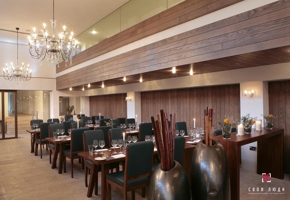 Бар стал настоящим местом притяжения гостей. Вам предложат коктейли и прохладительные напитки, а также традиционные закуски. Предметом восхищенного обсуждения посетителей постоянно становятся камин в традиционном стиле, сводчатая арка и 300-летний мраморный пол.