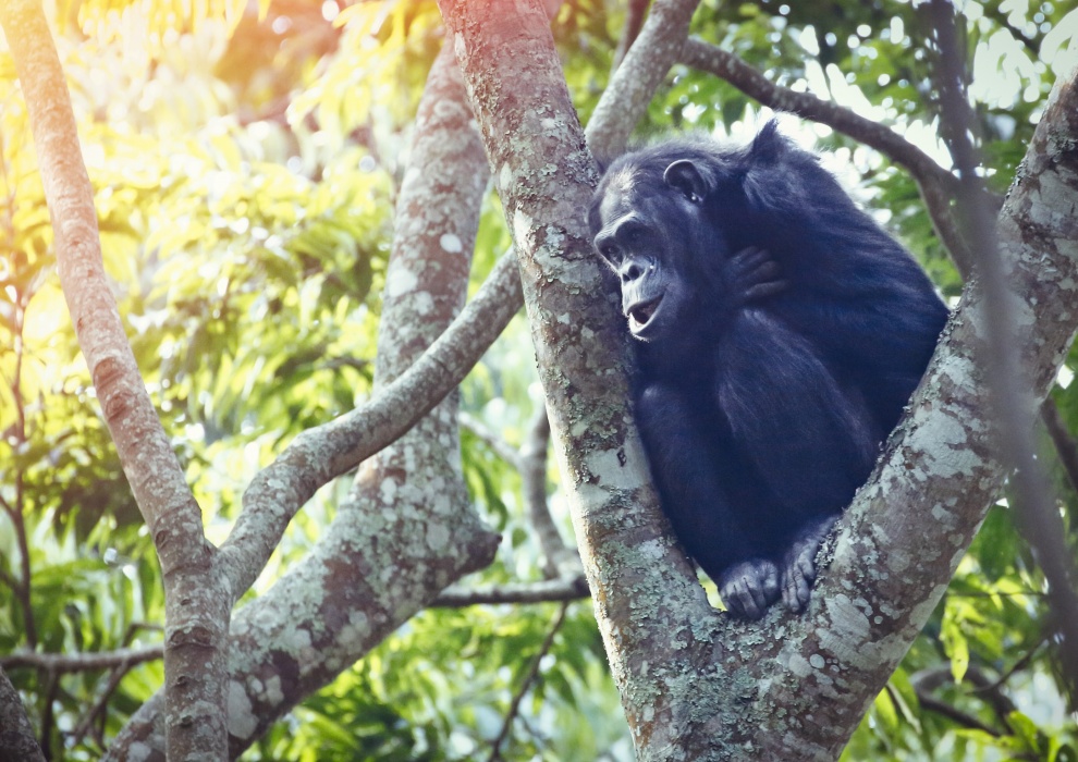 - Шимпанзе в их естественной среде обитания в Национальном парке Ньюнгве;