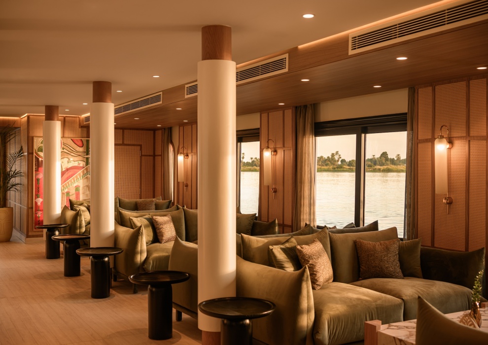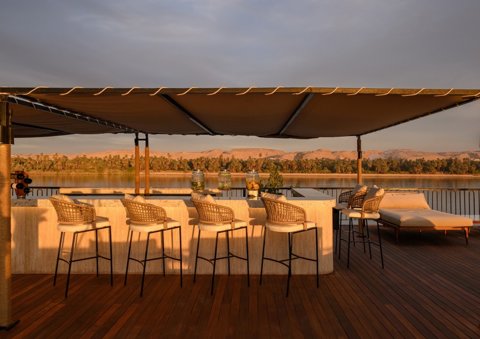 Лаундж-бар на борту Le Fayan Suites - это изысканное место отдыха, идеально подходящее для того, чтобы расслабиться или пообщаться, любуясь плавным течением реки. Благодаря удобным креслам, спокойной цветовой гамме и панорамному виду на реку Нил, это пространство станет центром вашего общения на борту. Независимо от того, потягиваете ли вы коктейль ручной работы на закате или наслаждаетесь спокойным вечерним напитком, в нашем баре изысканное обслуживание сочетается с непринужденным очарованием роскошного круиза по Нилу.