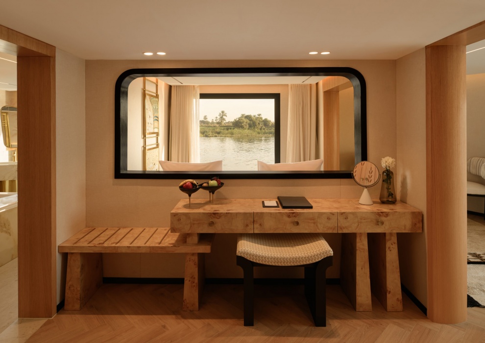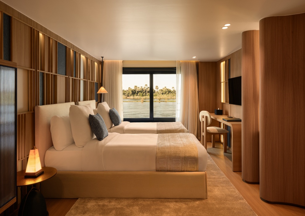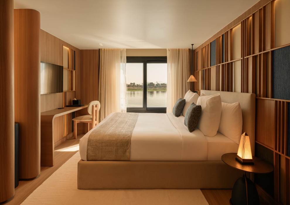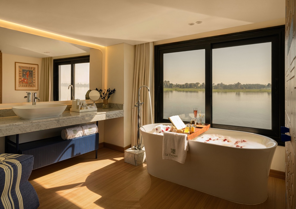 В 36 люксах Le Fayan гармонично сочетаются современный комфорт и безмятежный дизайн. Большие окна пропускают естественное освещение и открывают прекрасный вид на реку Нил, а спокойная палитра, изысканная мебель и элегантные детали ванной комнаты создают ощущение равновесия и возвышенности. Продуманная планировка и безупречная отделка этих люксов создают успокаивающую атмосферу на протяжении всего вашего круизного путешествия по Нилу.