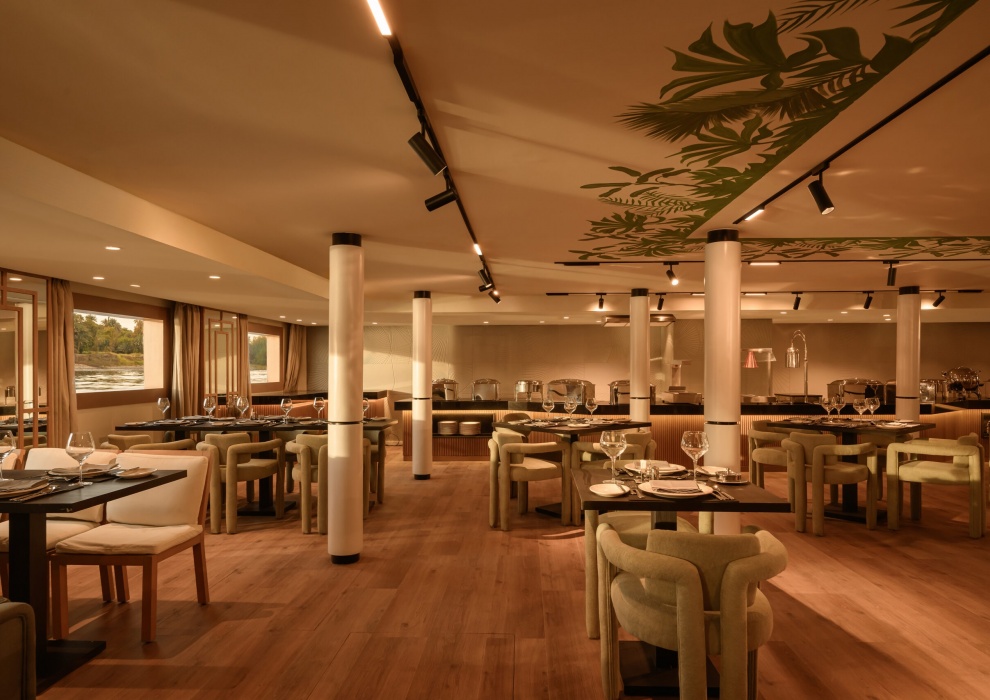 Main Restaurant- ресторан на борту предлагает широкий выбор блюд местной кухни, приготовленные только из самых свежих и высококачественных ингредиентов. Ресторан изысканной кухни - ресторан с обслуживанием по меню на ужин, "шведский стол" на завтрак и обед, а также обширный выбор вин и напитков.