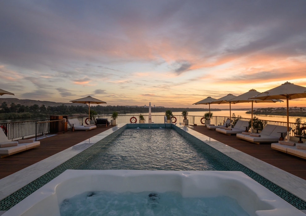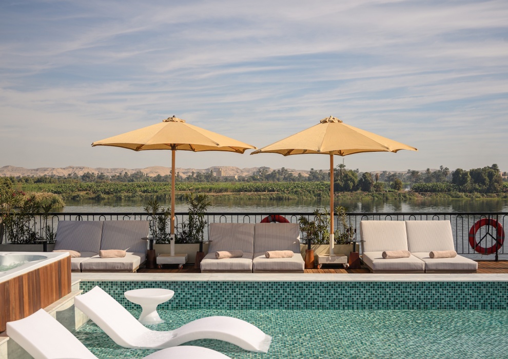 Терраса для загара и бассейн - это безмятежный оазис отеля Le Fayan Suites, созданный для того, чтобы вы могли по достоинству оценить постоянно меняющийся пейзаж реки Нил. Отдохните на просторных шезлонгах у бассейна, выпейте прохладительный напиток из бара или просто понежьтесь на солнце, любуясь течением реки. Этот отель на открытом воздухе сочетает в себе продуманный дизайн и неторопливую роскошь, создавая спокойную обстановку для отдыха и размышлений во время вашего круиза по Нилу.