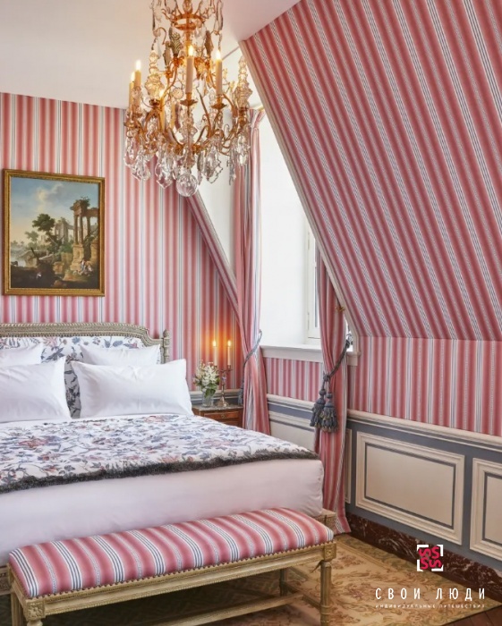 Вдохновением для проекта послужили Малый Трианон на территории Версальского дворца и стиль Людовика XVI, который также является самостоятельным направлением в дизайне и представляет яркий пример неоклассицизма в дизайне и архитектуре. В результате кропотливой работы архитекторов и ремесленников «родились» 14 номеров и сьютов, в том числе и королевский signature suite площадью 120 кв. м, спа-центр Valmont с фреской и полом в виде шахматной доски из каррарского мрамора. А еще тут есть 15-метровый крытый бассейн и обеденный салон легендарного шеф-повара Алена Дюкасса.