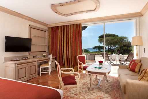 Gulf Suite: 50 кв.м. В этом номере спальня и гостиная зона разделены раздвижной дверью, а с балкона открывается чудесный вид на залив Сен-Тропе.
