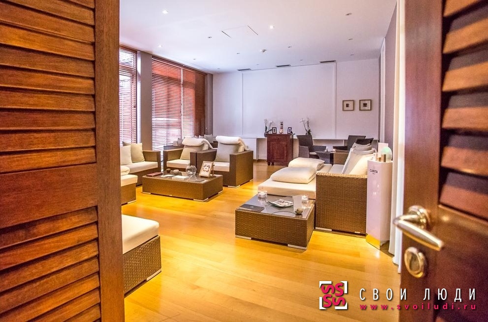 Одной из главных «фишек» отеля, безусловно, следует считать spa-центр SPA Maison Les 4 Terres, что значит «Дом четырех земель». В основе дизайна и устройства центра – древняя, известная с античных времен концепция четырех первородных элементов. Создатели центра использовали африканское верование, согласно которому четыре элемента, выраженные в глине, кристаллах, камнях и грязи, очищают, питают тело и дух, а также умиротворяют плоть. В центре используется специфическая методика – Теллютерапия, которая основана на умении специалистов правильно подбирать элементы, входящие в контакт с телом человека и вызывать у него приятные ощущения и чувство успокоения. А поскольку отель Ermitage Evian 4* Luxe славится своим продуманным до мельчайших деталей дизайном, то мотив четырех первородных элементов многократно повторяется и в оформлении комфортного и респектабельного spa-центра. Комнаты центра освещены мягким, естественным солнечным светом и украшены фонтанами. Кроме того, вам предложат чай, настоянный на горных травах, и комфортные, застеленные лучшим и самым мягким бельем кровати для отдыха.
