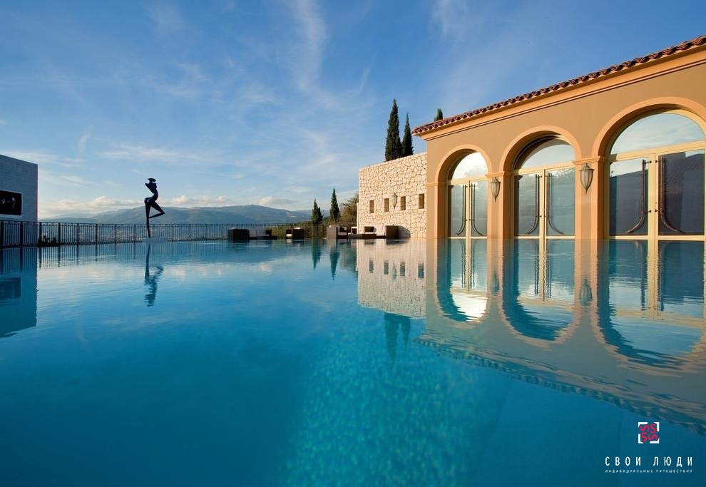 Во время прогулок по парку вы сможете увидеть более двухсот видов самых разнообразных растений, характерных для Средиземноморья. В глубине пышного сада есть три просторных бассейна, два джакузи, сауна и специально оборудованная зона для занятий фитнесом на свежем воздухе.
