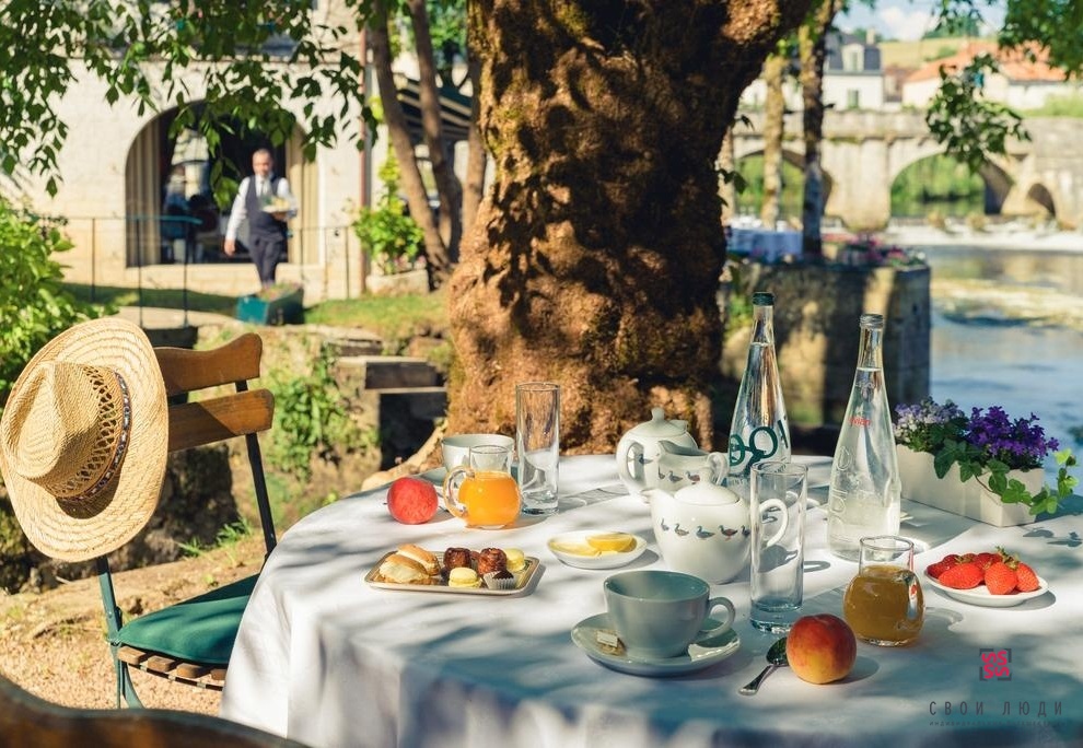 Рестораны и барыВ гастрономическом ресторане отеля с прелестной террасой прямо у реки можно попробовать прекрасные блюда французской кухни от шеф-повара из местных сезонных продуктов, а также бордоские вина. В 300 метрах от отеля расположено еще два ресторанчика. В первом, харчевне AuFilduTemps с видом на городок, гостям предложат перигорские блюда и гриль-меню, во втором, Au Fil de l'Eau, который находится рядом с Брантомским мостом, – прекрасную рыбу и морепродукты.