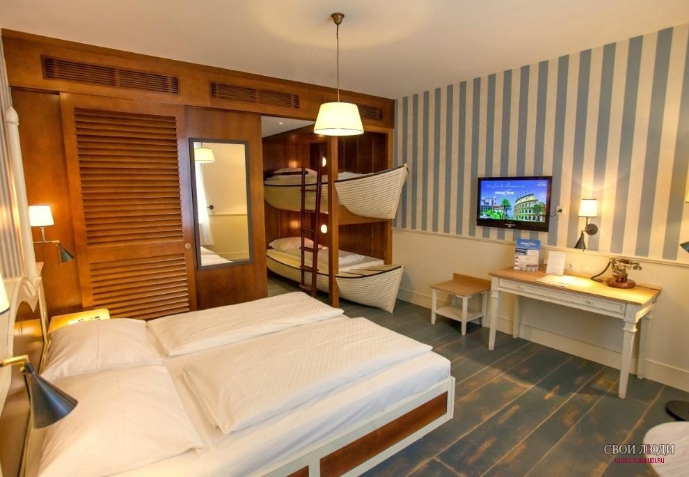 Lighthouse Suite «Ahoi Heimat» by Stefan Strumbe: дизайнерский люкс, выполненный в светлых тонах, включающий спальню с двуспальной кроватью, детскую с двухъярусной кроватью, ванную комнату с душем, туалет, балкон. Дополнительные удобства: кофеварка, чайник, фрукты, косметика Molton Brown. Максимальная вместимость – 4 чел. Площадь – 38 кв. м.