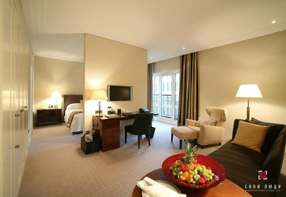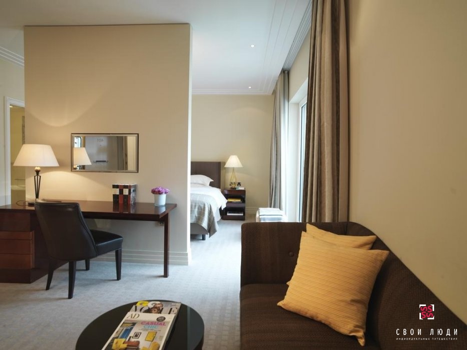 В номере: шумозащитные окна, ванная комната с душем или ванной, фен, косметическое зеркало, письменный стол, телефон с автоответчиком, ТВ, радио, DVD, CD, сейф, мини-бар, зеркало во весь рост, халат, уголок для отдыха, кондиционер.