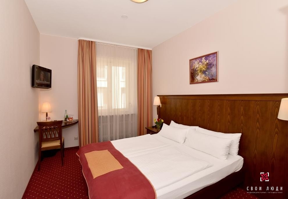 В номере: шумозащитные окна, письменный стол, сейф, телефон, зеркало во весь рост, бесплатный беспроводной интернет, фен, ванная комната с душем, ТВ, радио.