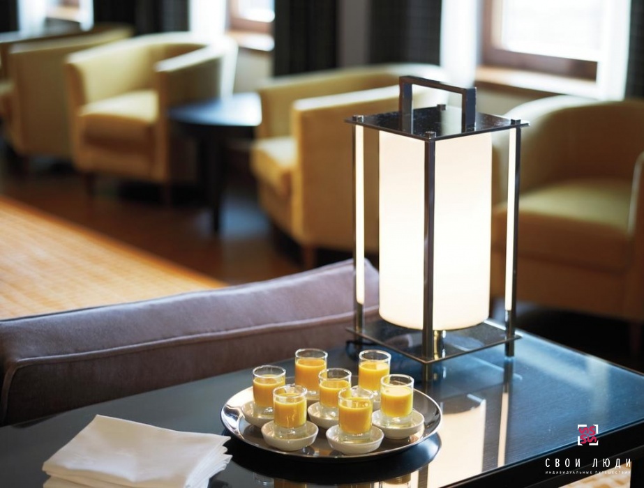 В комфортабельных номерах — элегантные интерьеры в классическом стиле, с отделкой из дерева и дорогих тканей, красивыми драпировками, изящной мебелью, украшенные изысканной живописью и антикварными предметами искусства.