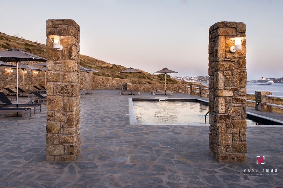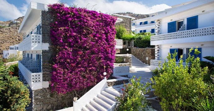 Отель находится на самом популярном среди путешественников острове Киклад, любимом богатыми и знаменитыми Миконосе. В пешеходной доступности от него находятся ухоженный песчаный пляж, центральная часть города и многочисленные достопримечательности, в том числе Кафедральный собор, Археологический музей и маяк.