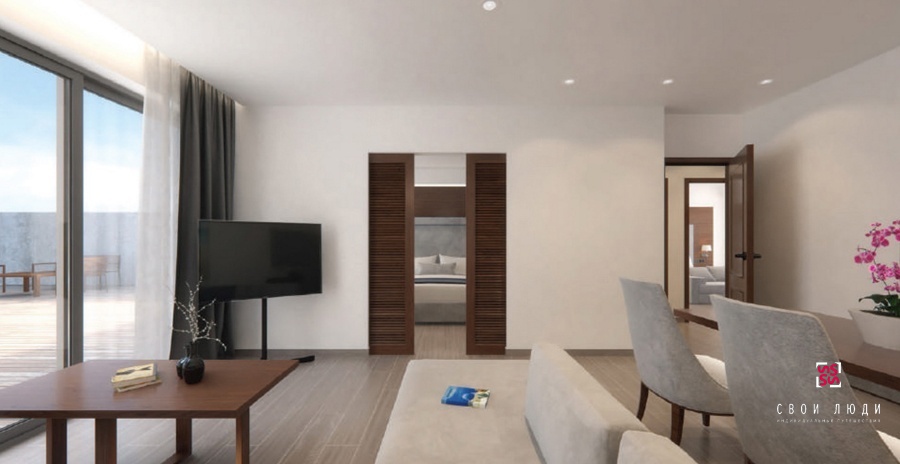 Premium Energy Suite: роскошные номера площадью 80 кв. м. На просторной террасе располагается бассейн, в отдельной комнате – частный тренажерный зал. В каждом из номеров данной категории могут разместиться 3 взрослых или 2 взрослых и 1 ребенок.
