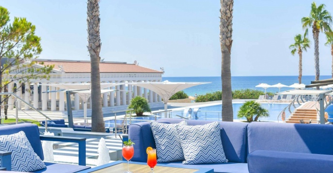 Suite Sea View: вид на море, площадь 50 кв. м, балкон. В номере 1 двуспальная кровать с 2 матрасами, а также 2 дивана-кровати, либо 1 диван-кровать и 1 кресло-кровать. Сюит состоит из спальни и гостиной. В номере могут разместиться до 5-ти человек: 2 взрослых и 3 детей, либо 3 взрослых. Для гостей, остановившихся в люксах, обеды и ужины сервируются в a la carte ресторане Acropolis.