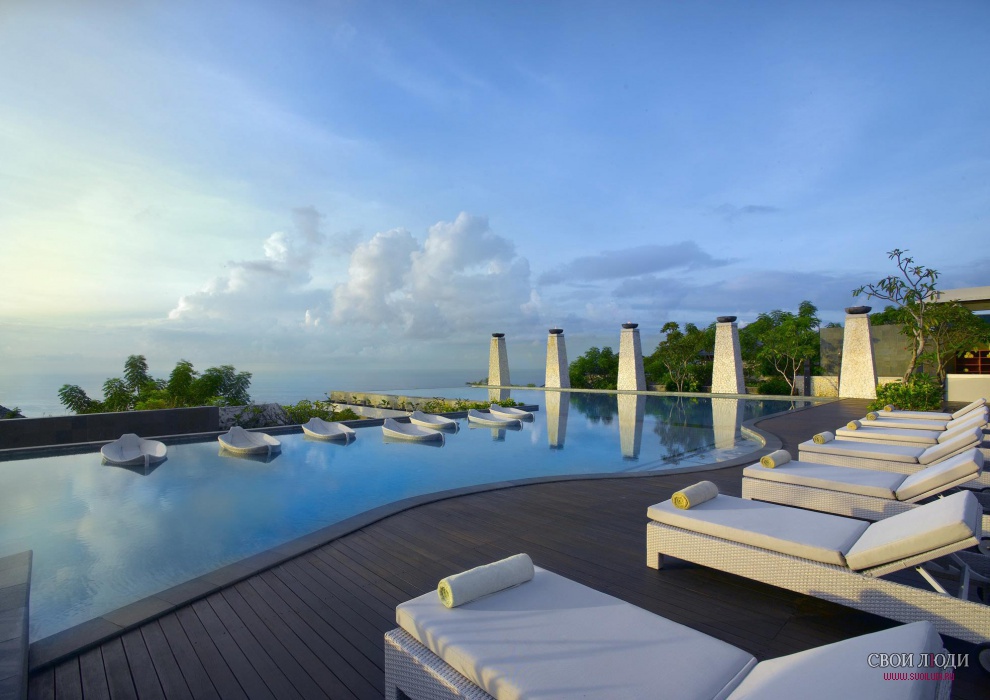 Роскошные виллы, окруженные экзотическими деревьями, находятся неподалеку от знаменитого храма Улувату. Дорога от аэропорта Денпасара до курорта занимает не более 40 минут.