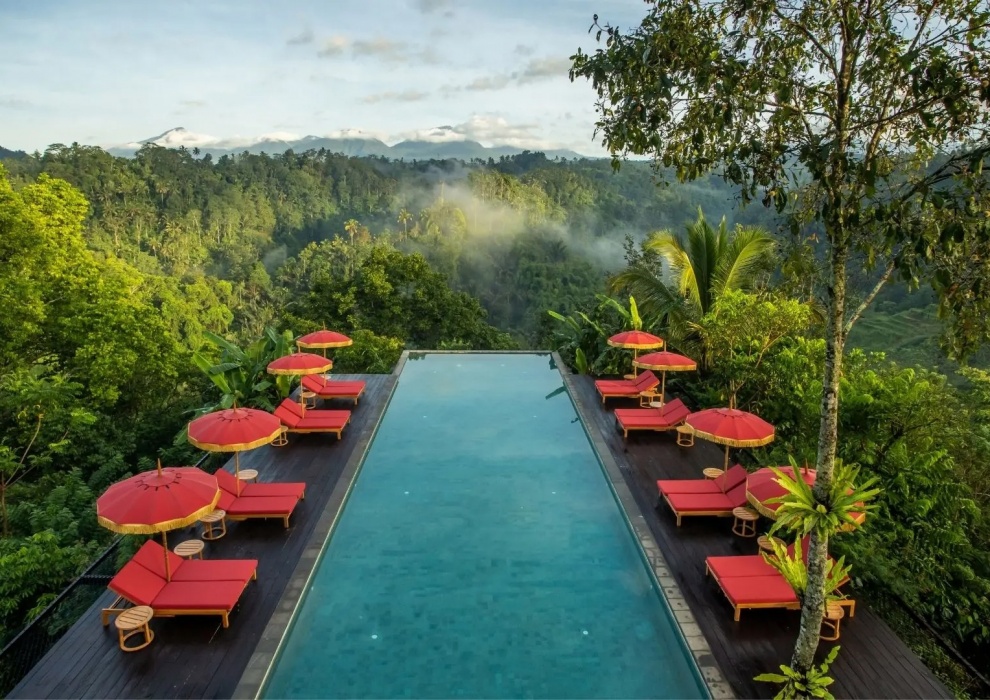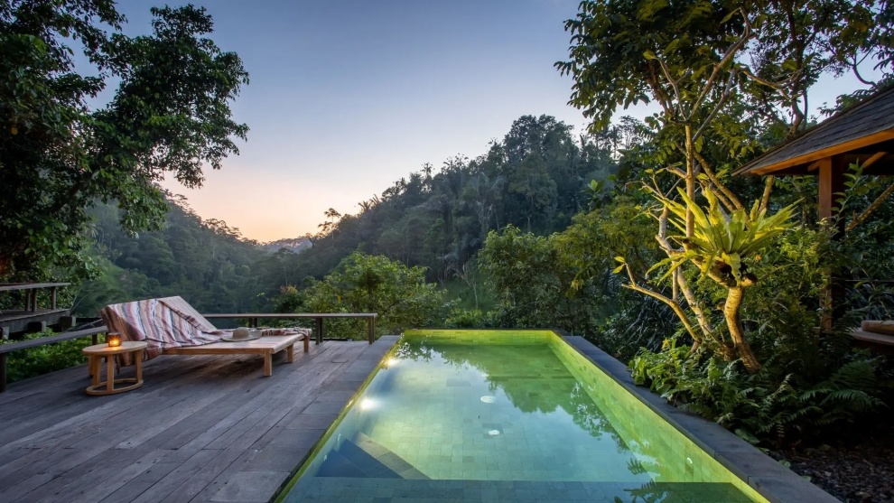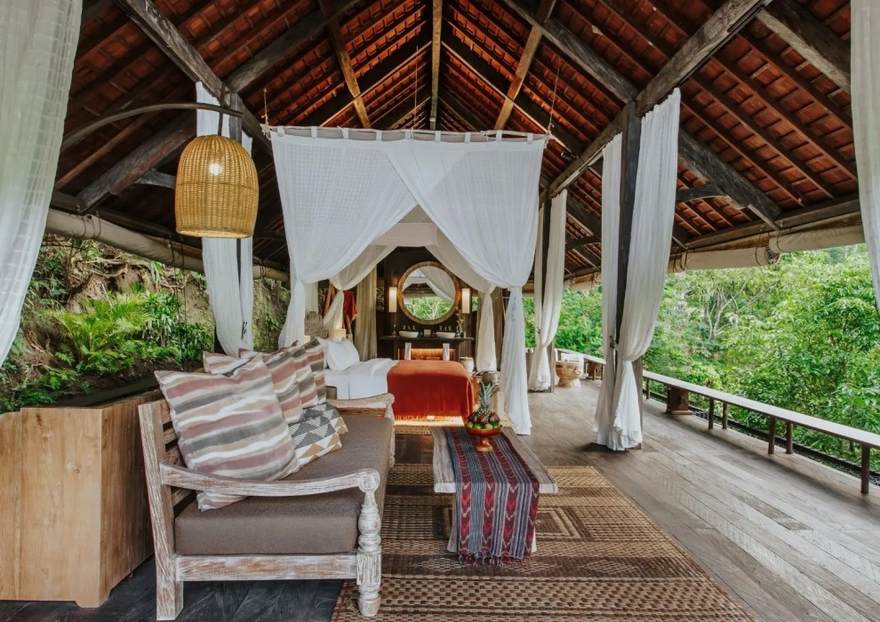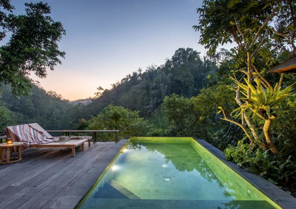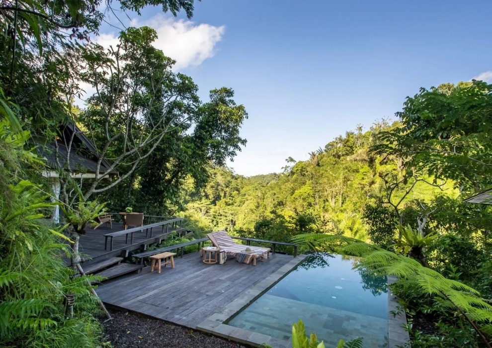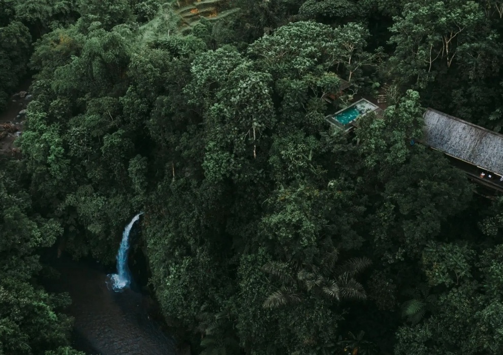 Above The Waterfall Pool Bale - 116 м2. Спальня, гостиная, частная терраса, частный бассейн, газебо, мини-бар, ванная комната с душем и ванной, фен, халаты, мобильный телефон с безлимитным Wi Fi, сейф. Создайте захватывающее путешествие, чтобы полностью ощутить суть "джунглей" в уединенном раю. Вышеупомянутый бассейн с водопадом Bale предлагает путешествие самопознания и обновления, а также приобщиться к искусству наслаждаться настоящей интимностью в этом священном убежище.