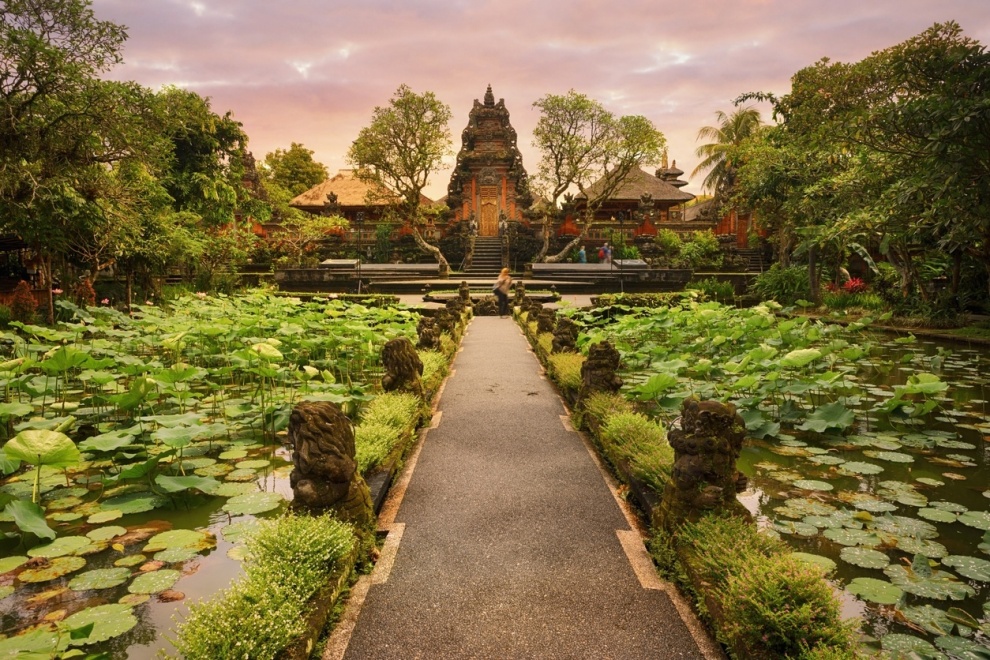Большинство пляжей севера с северо-запада Бали покрыты черным вулканическим песком, на юге, юго-западе и юго-востоке острова белые песчаные пляжи. Длина острова Бали около 100 км, находится он к югу от Сингапура, чуть восточнее Явы и в непосредственной близости от них. Остров Бали украшают не только превосходные курорты с голубыми лагунами и густыми тропическими джунглями, но и богатейшая чувственная культура, пришедшая на Бали с Явы в 15 веке вместе с династией Маджапахит. Эта культура и в наши дни поражает воображение неповторимой архитектурой, экзотикой музыки, танцев, живописи.