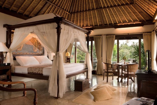 Комплекс Kamandalu Resort & Spa состоит из 58 апартаментов-вилл, каждая из которых окружена небольшим уютным садом. Вилла включает в себя большую спальню, оборудованную просторной кроватью с балдахином, и гостиную, а под открытым небом – душевую.