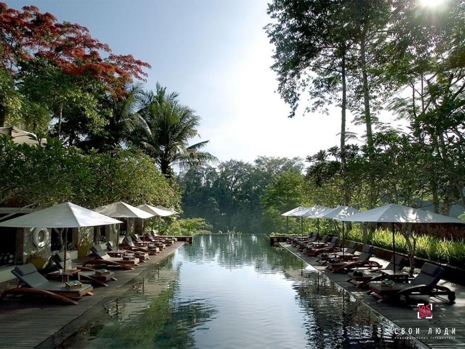 Пятизвездочный отель Maya Ubud Resort & Spa 5* относится к цепочке гостиниц знаменитой испанской корпорации Meliá Hotels & Resorts, славящейся превосходными развлекательными программами. Вечернее шоу, которое проводится каждый день, начиная с 2008 года, носит название «7 Чудес Meliá Bali». Это увлекательное кабаре с культурной программой, яркими, красочными выступлениями и тематическими ужинами. Территория отеля составляет 12 гектаров и включает в себя отгороженный песчаный пляж и роскошный тропический сад с ухоженными аллеями. Имеется также первоклассная инфраструктура для любителей активного отдыха.