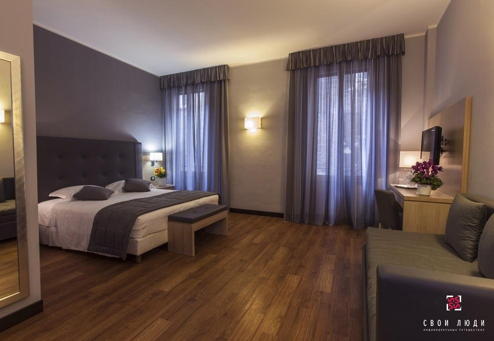 Hotel Accademia предлагает размещение в 28 комфортабельных номерах со всеми современными удобствами и двойными звуконепроницаемыми стеклопакетами на окнах. Все номера с ремонтом, выдержаны в тёплой золотисто-коричневой гамме с яркими вишнёвыми, синими, бежевыми или нежно-салатовыми деталями интерьера.