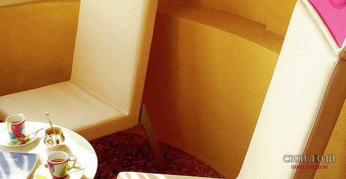 Например, в ванных комнатах – пушистые мягкие белые халаты с серебряной монограммой отеля и синими тапочками для мужчин, а с золотой вышивкой и ярко-оранжевыми тапочками – для лучшей половины человечества. Всего в Byblos Art Hotel Villa Amista 5* шестьдесят номеров различных категорий с непременной гостиничной атрибутикой – LCD-телевизором, доступом в Интернет и телефоном, кондиционером и мини-баром и, конечно же, вечным охранником всего драгоценного – сейфом.