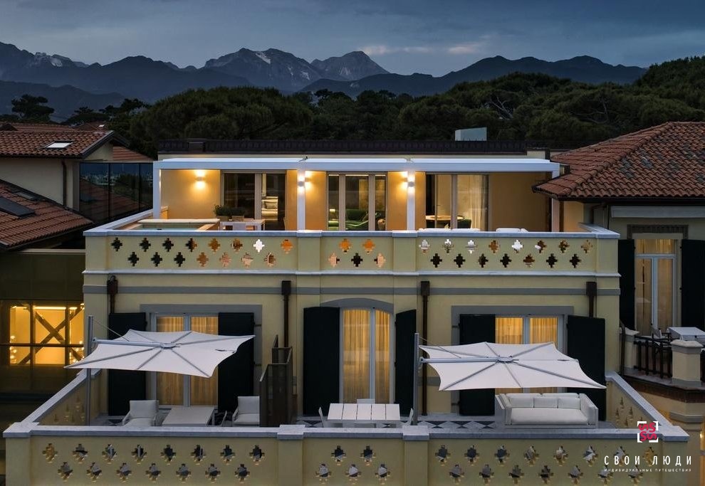 Роскошный итальянский отель Hotel Byron 5*, входящий в цепочку Soft Living Places, расположен в районе Форте-дей-Марми – фешенебельного тосканского курорта на побережье Тирренского моря. Популярность у итальянских аристократов и знаменитостей это местечко обрело в середине прошлого века благодаря превосходным пляжам, живописным садам и мягкому климату.