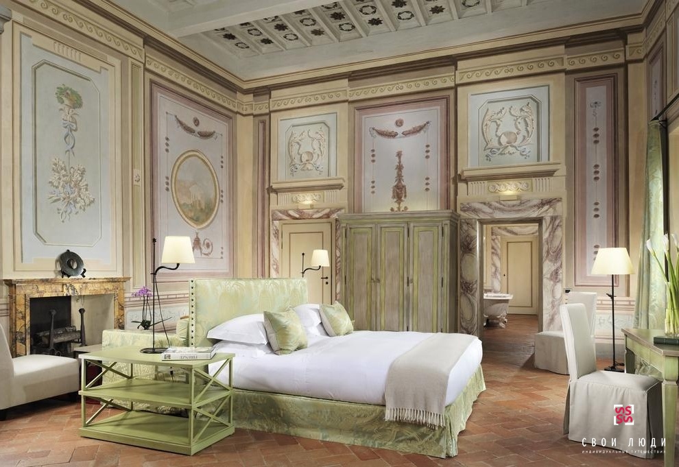 Отель Castello del Nero предлагает 50 комфортных и элегантных номеров – в их числе 18 Suites и 32 Standard Rooms, отличающихся обстановкой и размером, дизайном и стилем. 18 шикарных Suites оснащены по последнему слову техники, а также оформлены натуральной фресковой живописью. Потолки в номерах сделаны из дерева высшего качества. Пол облицован обожженным кирпичом и выложен терракотовой плиткой. Ванные комнаты отделаны мрамором и украшены мозаикой. В каждом номере — украшенные изысканными произведениями искусства и выдержанные в теплых тонах индивидуальные интерьеры в тосканском стиле. Гостей восхитят лепнина и фрески ручной работы, старинные камины, сводчатые расписные потолки и предметы антиквариата.