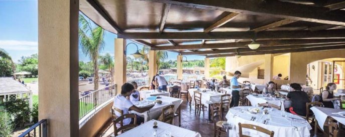 Area Mirto: ресторан рядом с бассейном. Здесь «шведский стол» ждет гостей, разместившихся в номерах категорий Domus, Dimora Junior Suite и Casbah Superior.