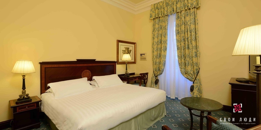 Executive Club Level – во все номера осуществляется утренняя доставка газет, также предусмотрен сервис turndown и отдельная зона регистрации в отеле. Все окна в номере открываются, в наличии мини-бар, телевизор с программами кабельного телевидения, кондиционер. Сделать несколько часов отдыха после прогулки еще более приятными гостям поможет коллекция видеофильмов и видеоигр. Если же постоялец отеля планирует деловые встречи в Риме, тогда к его услугам доступ к Интернету и телефон с двойной линией и голосовой почтой.
