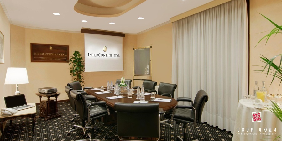 Для того чтобы запланированная деловая встреча была проведена на высшем уровне, отель De La Ville Intercontinental предоставляет абсолютно все условия. В здании гостиницы предусмотрены 4 конференц-зала, общая площадь которых – 319, 69 м². Все они оборудованы в соответствии с последними техническими новинками.