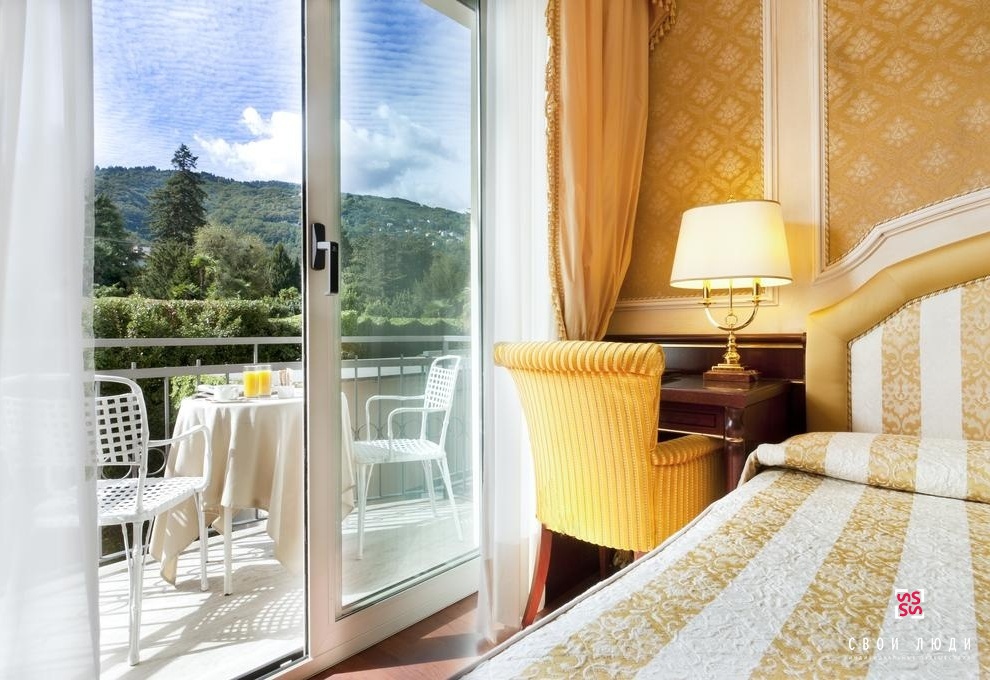 Уютный отель Grand Hotel Bristol 4* предлагает гостям широкий выбор номеров. В каждом есть ванная либо душ, туалетная комната. Вид из окон многих комнат просто ошеломляет. Приятно просыпаться по утрам и видеть красоту озера.