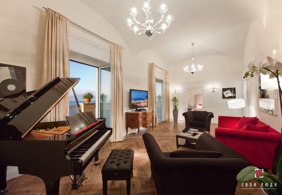 Suite Caruso – название этого номера говорит о том, что в нем когда-то жил и творил великий тенор. Здесь по сей день сохранились некоторые личные вещи знаменитости, его фотографии, письма и фортепиано. Карузо даже посвятил отелю в 1921 году песню «Вернись в Сорренто».
