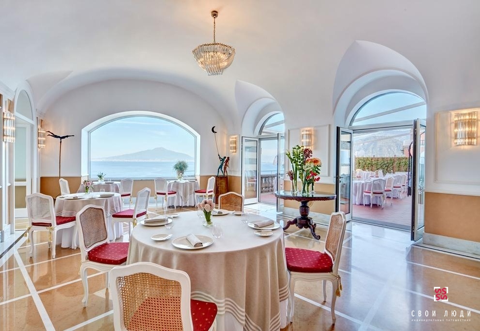 Многие Suite в отеле названы в честь звезд, которые в них останавливались. Сьют Помпеи, Сьют Энрико Карузо, Сьют Аврора и Сьют, названный в честь английской принцессы Маргарет. Некоторые номера имеют террасы и прекрасный вид на Неаполитанский залив, окна других выходят на цитрусовый сад и великолепный вечнозеленый парк.